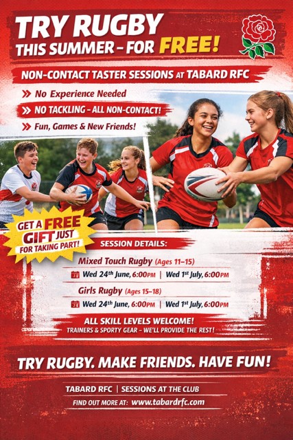 Looking for something fun, active and different to try this summer? We’re excited to launch our FREE, NON‑CONTACT Rugby Taster Sessions at Tabard Rugby Club — perfect for young people who want to get moving, try a new sport and have a laugh with friends.